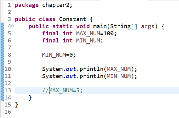 예약어 final을 사용해 상수를 선언하는 방법을 배웠습니다. 상수는 한 번 값을 정의하면 이후에 그 값을 변경할 수 없습니다. 주석 처리한 부분을 해제하고 실행하면 오류가 발생했습니다.