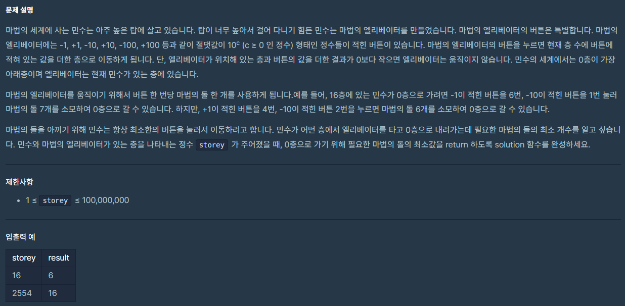 [PRO] 프로그래머스 148653번: 마법의 엘리베이터 본문