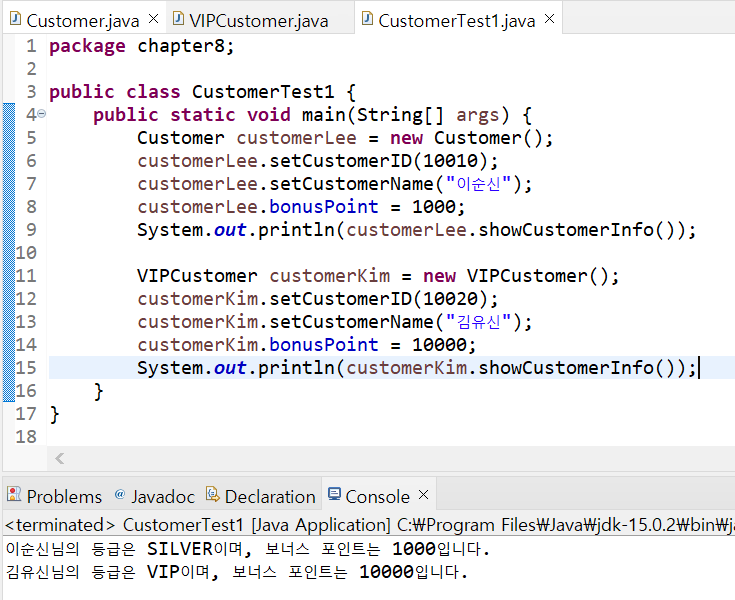Customer 클래스와 VIPCustomer 클래스를 사용한 프로그램입니다.